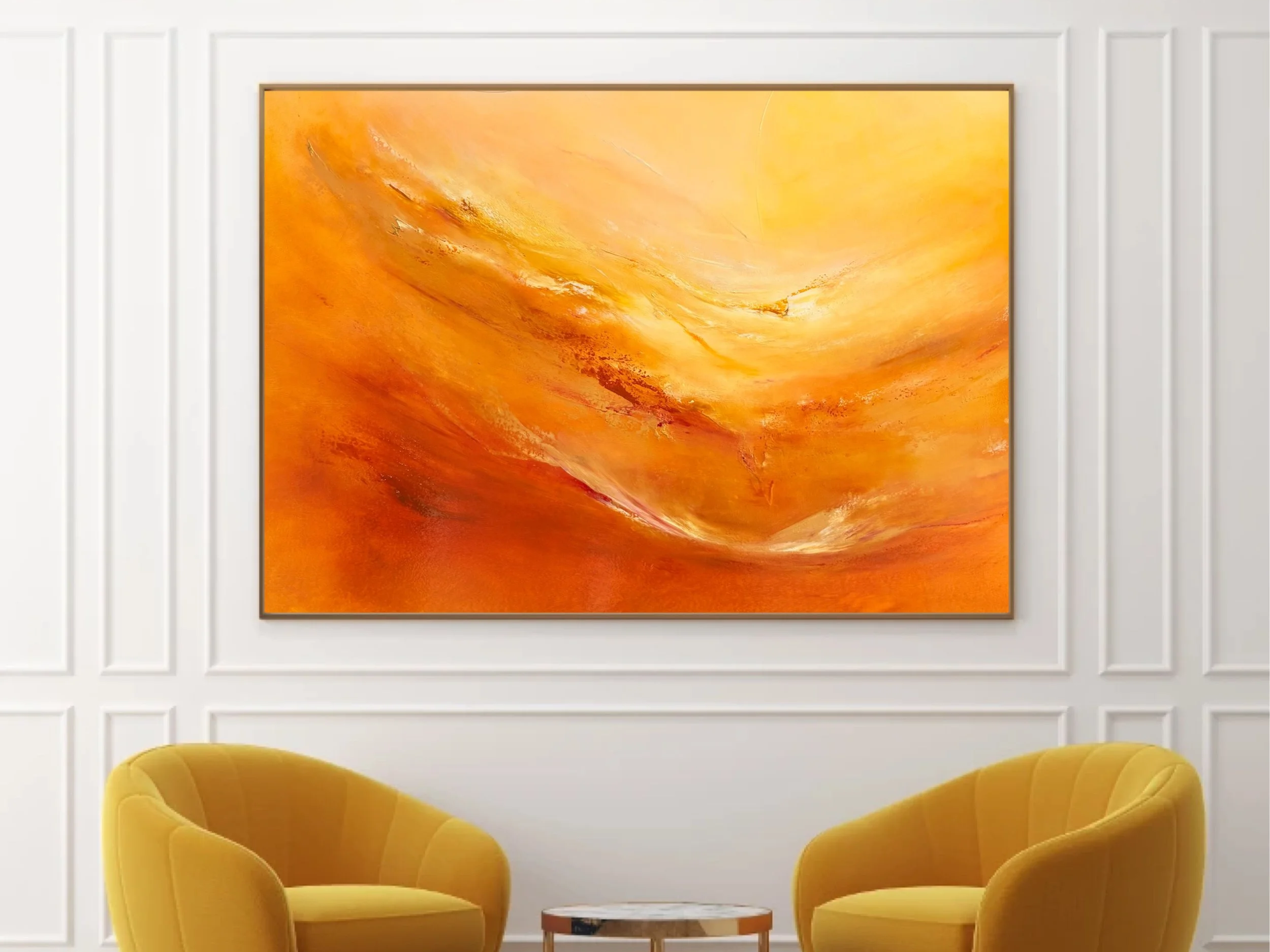 Her signature use of iridescent gold pigment symbolises light, growth, and abundance — a quiet radiance at the heart of her work. Guided by intuition, Mira creates pieces that speak directly to the soul, forming a dialogue between colour, feeling, and light.